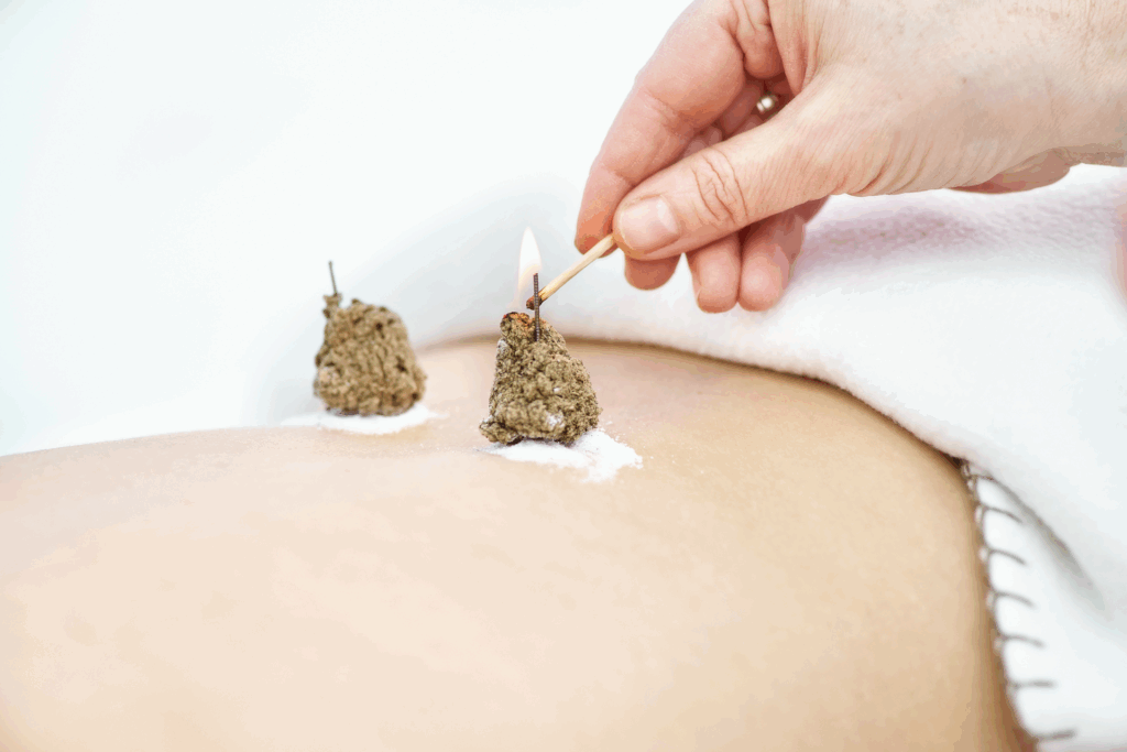 Moxa can be applied indirectly or directly. For direct Moxa, the acupuncturist burns small pieces of the herb Moxa directly on the skin. This is an invasive procedure that can damage the skin, but is very effective for treating “empty” or “cold” conditions such as lumbar pain, diarrhea, abdominal pain, impotence, asthma, and tuberculosis.